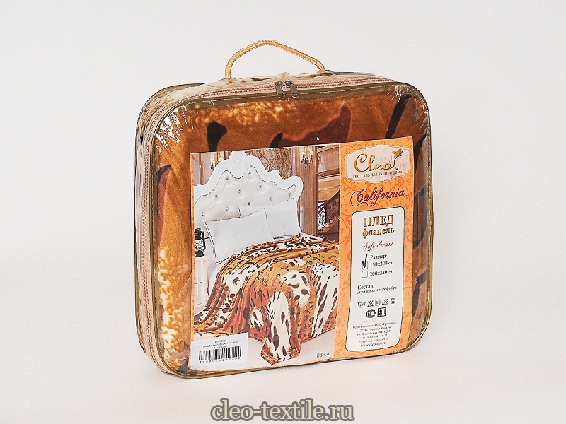 Коллекция Пледов Cleo Калифорния – Модное решение вашего интерьера! Изготовлен плед из ткани велсофт. Велсофт – это очень нежный, пушистый и мягкий материал. Ворс у ткани длинный, что делает ее очень теплой и приятной на ощупь. Изделия из велсофта легкие и прочные, их можно стирать в стиральной машине, так как они стойки к истиранию и механическим воздействиям. Коллекция Пледов Cleo Калифорния – для самого требовательного покупателя. Разнообразие стилей, нежность и комфорт вашей семьи в любое время года!
