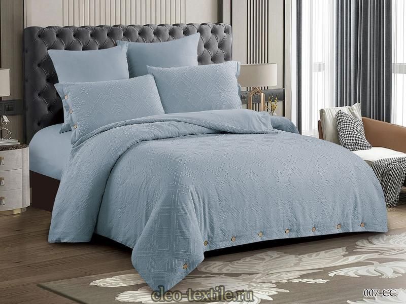 Коллекция - CANDY COTTON выполнена из хлопкового жаккарда с объемным эффектным геометрическим рисунком. Самыми важными свойствами жаккардовой ткани являются прочность и долговечность, что автоматически делает комплекты постельного белья этой коллекции популярными. Ткань не требует особого ухода. Стильный комплект постельного белья сшит в современном минималистском дизайне - низ пододеяльника и край наволочки 50*70 обработан планкой с петлями, застежка - пуговицы стилизованные под кокос. Нижняя часть пододеяльника и простынь - из гладкокрашеного в тон основной ткани вываренного мягкого хлопка. Коллекция CANDY COTTON представлена в трех размерах - двуспальные, евро и дуэт. Комплекты укомплектованы евро простыней и набором наволочек из 4 шт (50*70/ 2 шт , 70*70/ 2 шт).