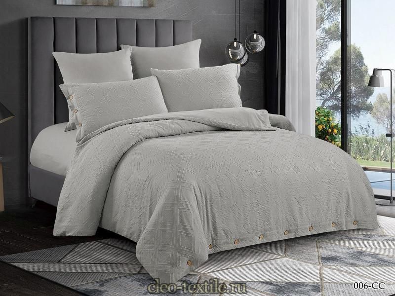 Коллекция - CANDY COTTON выполнена из хлопкового жаккарда с объемным эффектным геометрическим рисунком. Самыми важными свойствами жаккардовой ткани являются прочность и долговечность, что автоматически делает комплекты постельного белья этой коллекции популярными. Ткань не требует особого ухода. Стильный комплект постельного белья сшит в современном минималистском дизайне - низ пододеяльника и край наволочки 50*70 обработан планкой с петлями, застежка - пуговицы стилизованные под кокос. Нижняя часть пододеяльника и простынь - из гладкокрашеного в тон основной ткани вываренного мягкого хлопка. Коллекция CANDY COTTON представлена в трех размерах - двуспальные, евро и дуэт. Комплекты укомплектованы евро простыней и набором наволочек из 4 шт (50*70/ 2 шт , 70*70/ 2 шт).