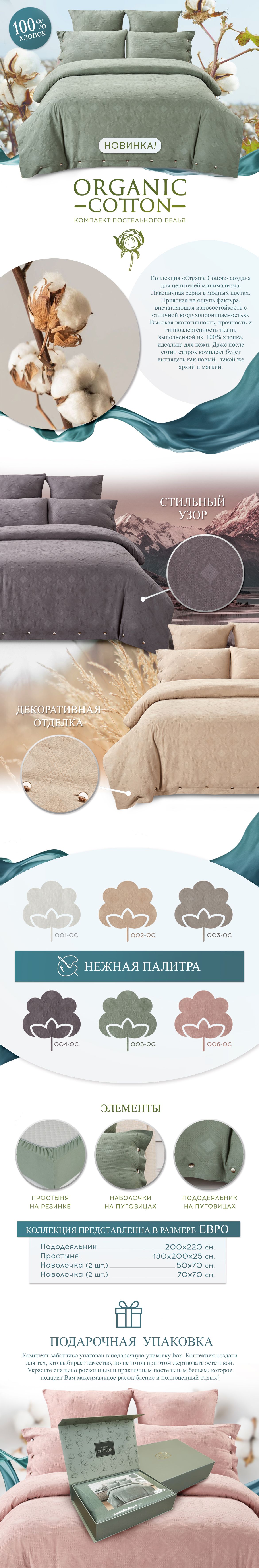 Коллекция постельного белья «Organic Cotton» создана для ценителей минимализма. Лаконичная серия в модных цветах.